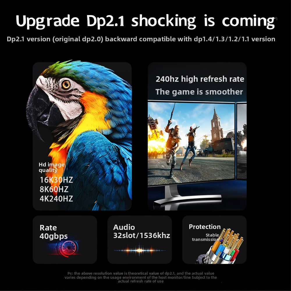 ADD: Home > New Products > 1m to 100m AOC Displayport 2.1 Fiber Optic Cable 16/60Hz 4K 240Hz Support DP2.1 Fiber Optic Cable Audio and Video HD Cable